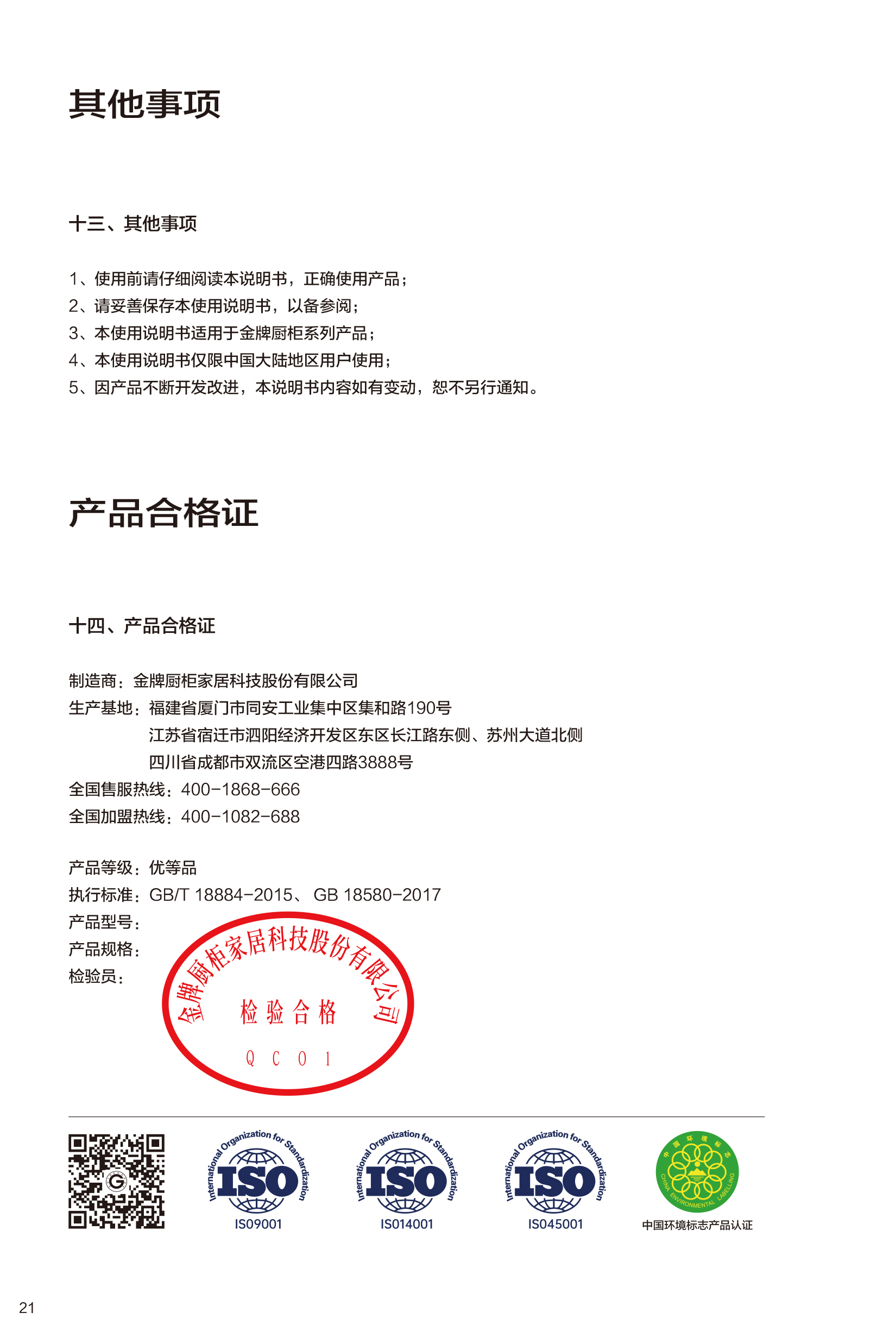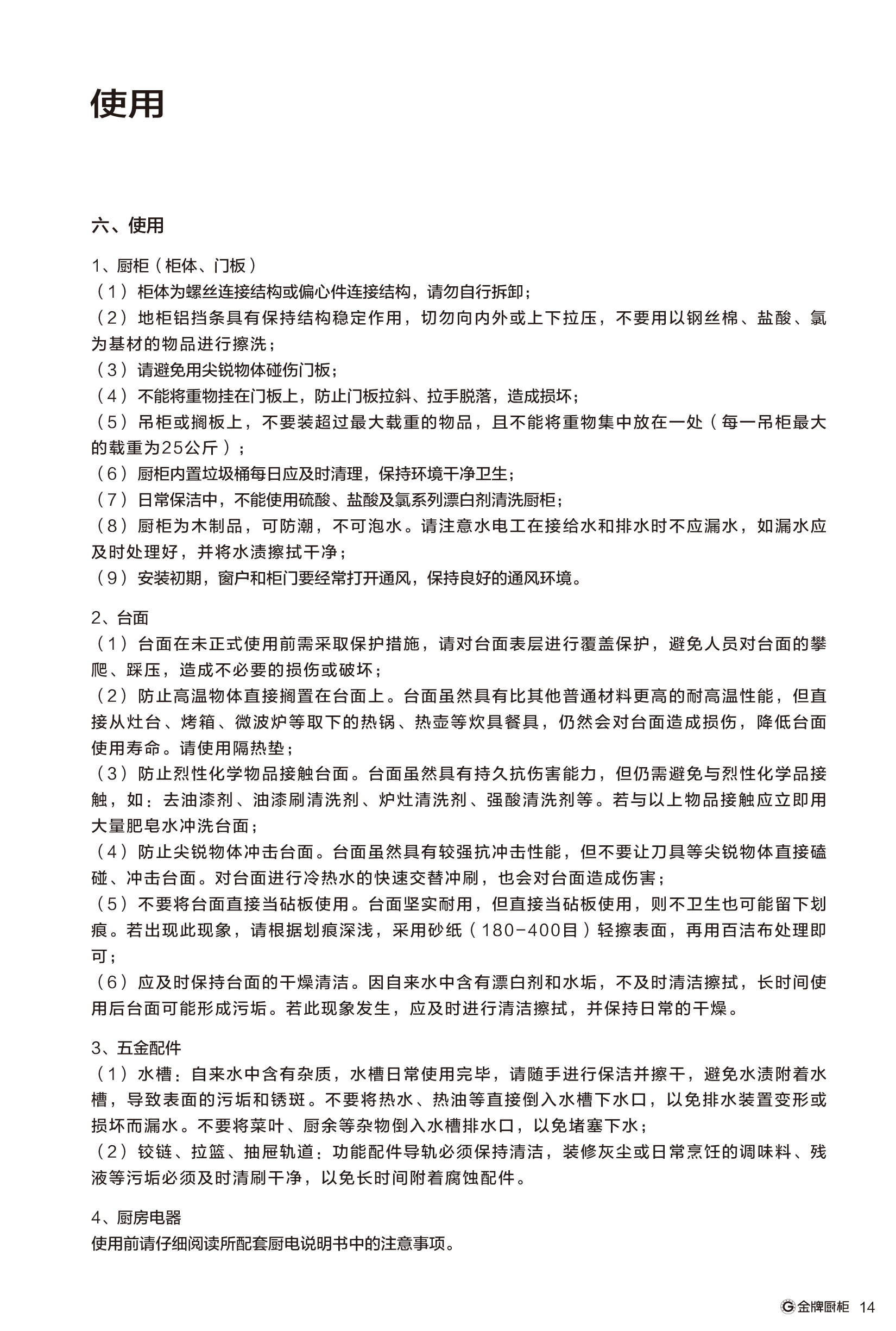 九州酷游「中国」厨柜使用说明书